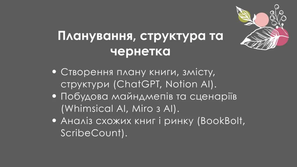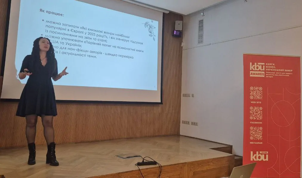 Ця теза задала тон усьому виступу. Коробова говорила про ШІ не як про загрозу чи «автомат для текстів», а як про партнера, який допомагає авторам і редакторам упоратися з рутинними завданнями — від аналізу документів до структурування книжки. Головне, за її словами, — зберігати контроль і мислення.