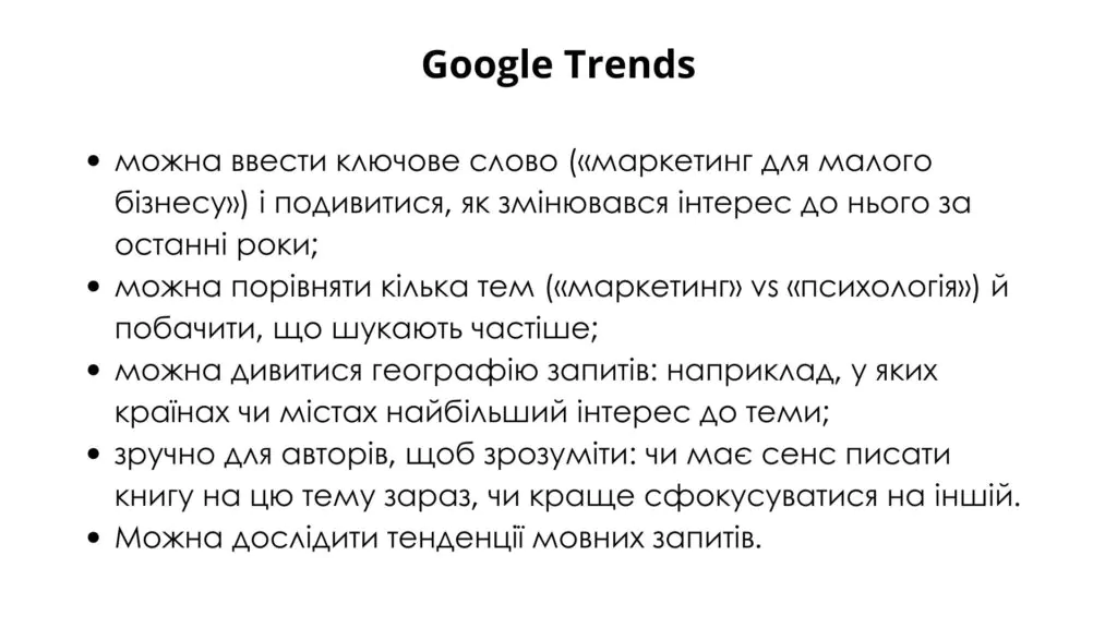 Це підкреслює практичну сторону маркетингового підходу: назва книги повинна відображати ключові слова і запити цільової аудиторії.